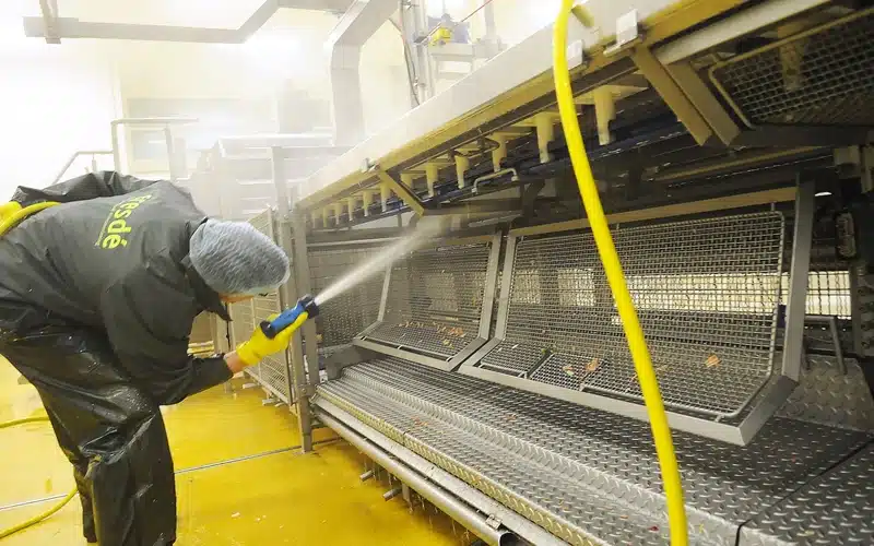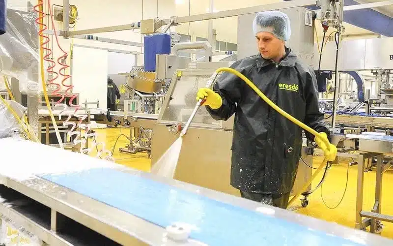 Ook de voedingsmiddelenindustrie heeft dieptereiniging nodig. Daarom is Eresdé in het bezit van professionele apparatuur voor optimale hygiëne. Denk hierbij bijvoorbeeld aan stoomreinigingstechnieken. Met dieptereiniging in de food branche pakken wij zelfs de kleine resten aan. Dit voorkomt productieverlies of (kruis)besmetting. Dieptereiniging zorgt ervoor dat uw bedrijf voldoet aan de strenge voedselveiligheidsnormen en voorschriften, zoals HACCP.