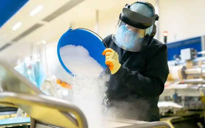 Schoonmaak in de voedingsmiddelenindustrie moet grondig en bacteriedodend zijn. Zo voorkomt u verspreiding van bacteriën of uitval van personeel. Dit is waar droogijsstralen in de food sector om de hoek komt kijken. Dankzij de lage temperatuur (-79 graden Celsius) biedt droogijsstralen een bacteriedodend effect. Het verwijdert hardnekkig vuil als vet, olie en voedingsresten, zonder vocht achter te laten. Droogijsstralen voorkomt secundair afval. De specialisten van Eresdé komen graag bij u op locatie met onze mobiele droogijsstraalmachines.