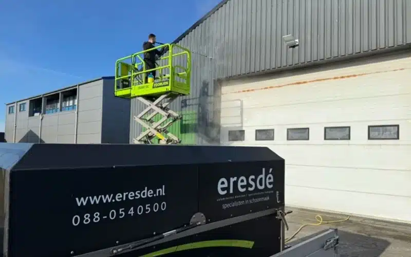 Het reinigen van kunststof onderdelen aan woningen en bedrijfspanden wordt veelal in het voorjaar gedaan. Zowel dakgoten, Trespa panelen, kozijnen en gevelbeplating nevelen we in met een zeepoplossing om vervolgens met heet water onder aangepaste druk schoon te spuiten.